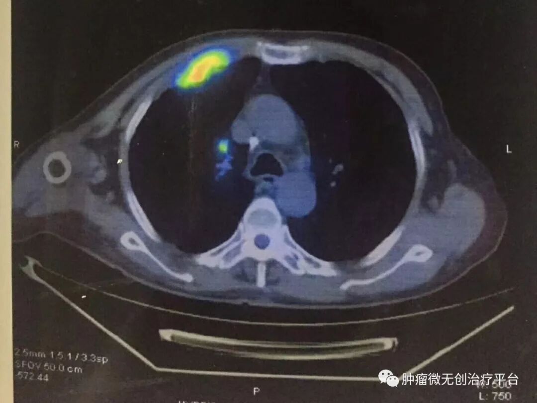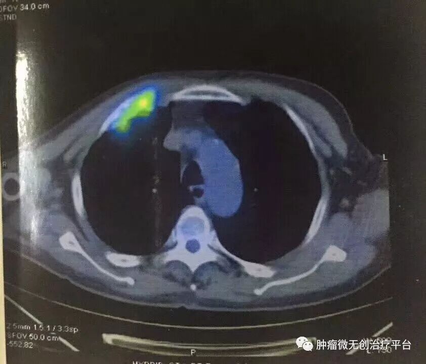 患者情况高龄(79岁)右肺腺癌侵犯胸壁患者肿瘤供血动脉栓塞➕氩氦刀冷冻消融术:图1-2术前PET-CT;图3术前CT;图4-5肿瘤供血动脉栓塞介入;图6-9氩氦刀冷冻消融治疗。
